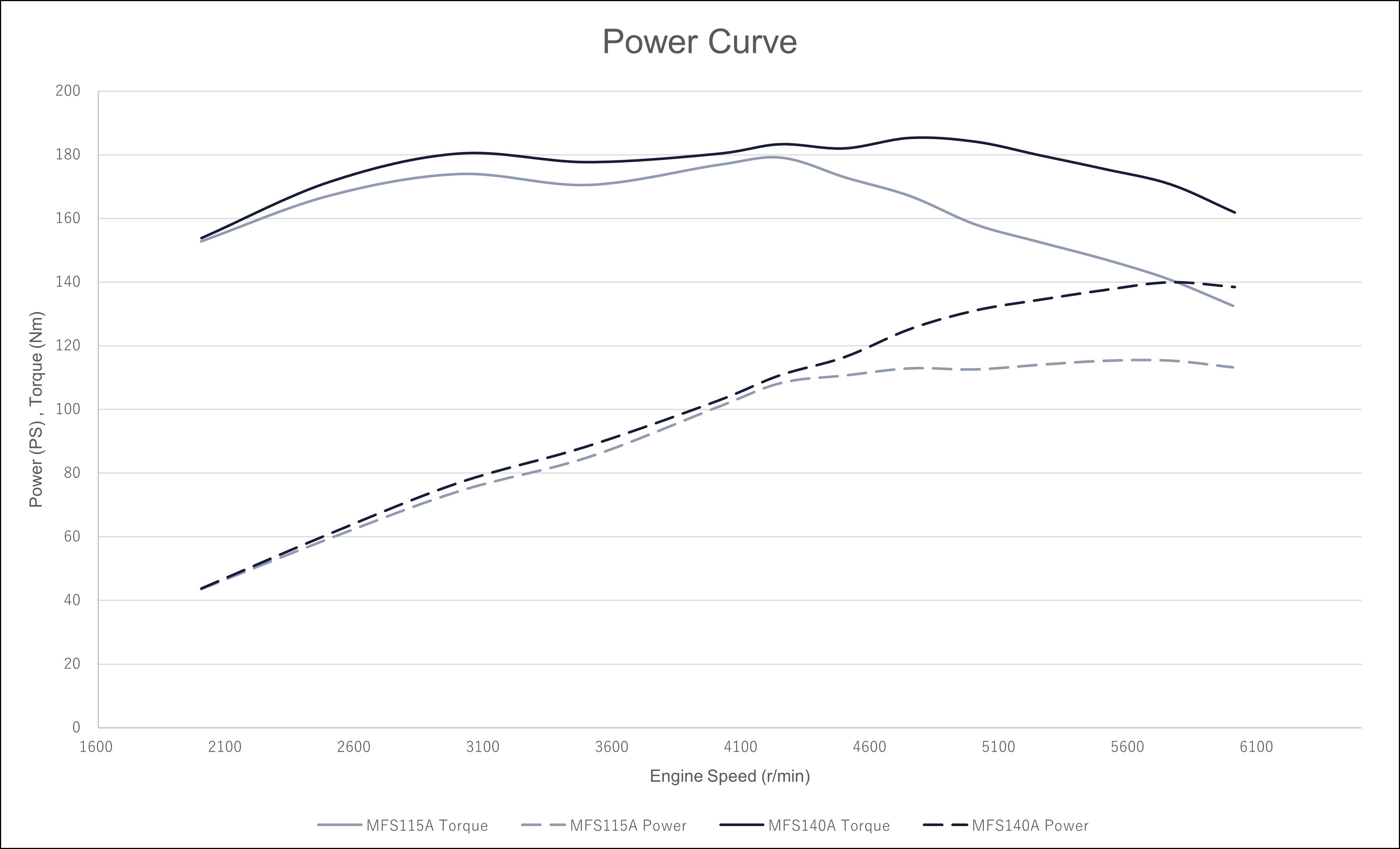 Jedinstvena i prva u industriji 4-2-1 Performance Tuned ispušna grana dizajnirana je za maksimiziranje niske krajnje performanse okretnog momenta i ubrzanja. Najbolji u klasi omjer zakretnog momenta i pomaka stvara izvrsnu izvedbu za sve stilove brodova od lakih do teških, za užitak ili komercijalnu uporabu. Na određenim primjenama na plovilima, MFS140A će imati slične performanse u usporedbi s težim vanbrodskim motorima od 150 konjskih snaga koji teže čak 45 kg više.